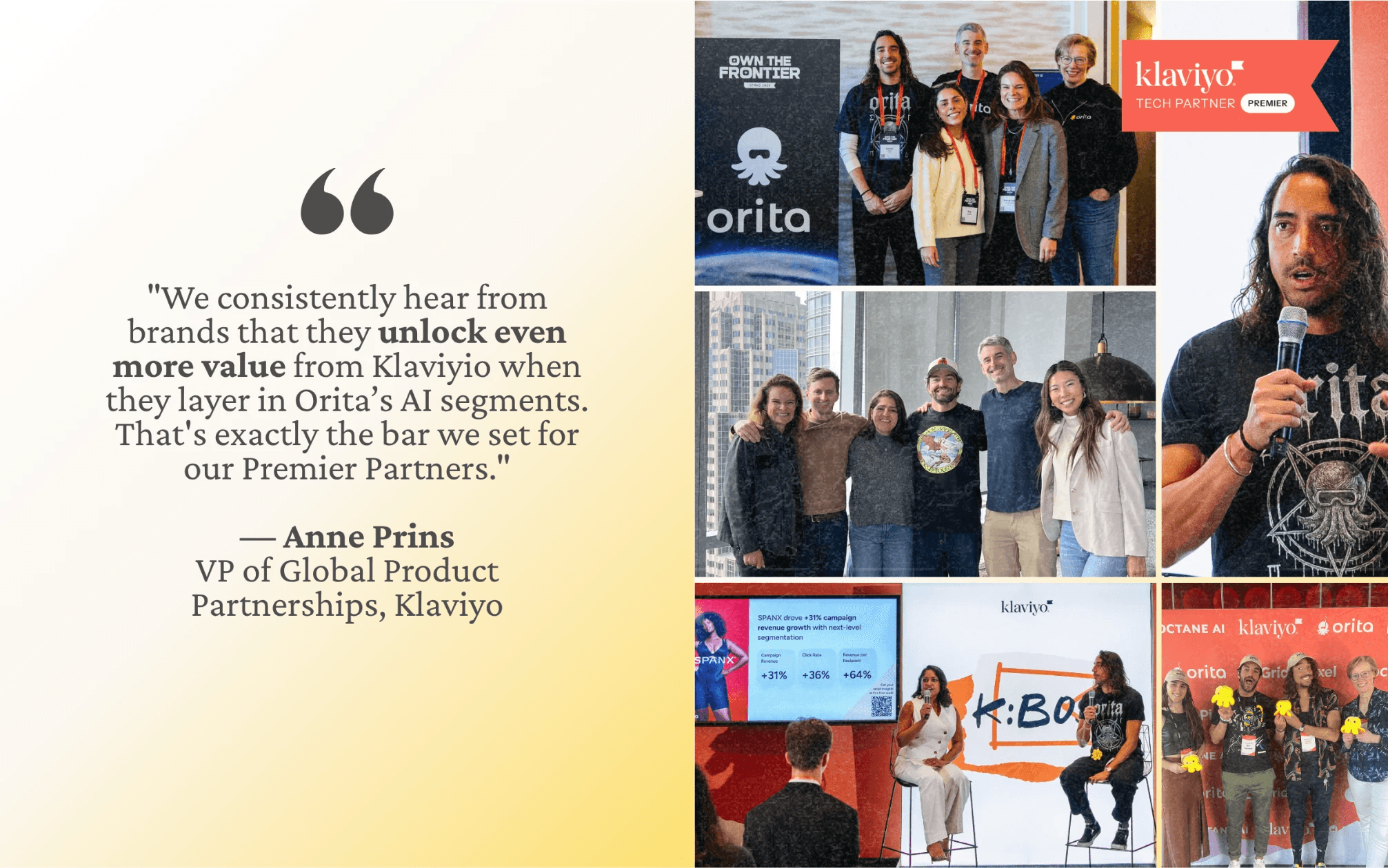 Anne Prins, VP of Global Product Partnerships at Klaviyo, goes further: "The Orita team has been an exceptional partner- deeply embedded in our ecosystem and it shows. We consistently hear from brands that they unlock even more value from Klaviyio when they layer in Orita’s AI segments. That's exactly the bar we set for our Premier Partners."