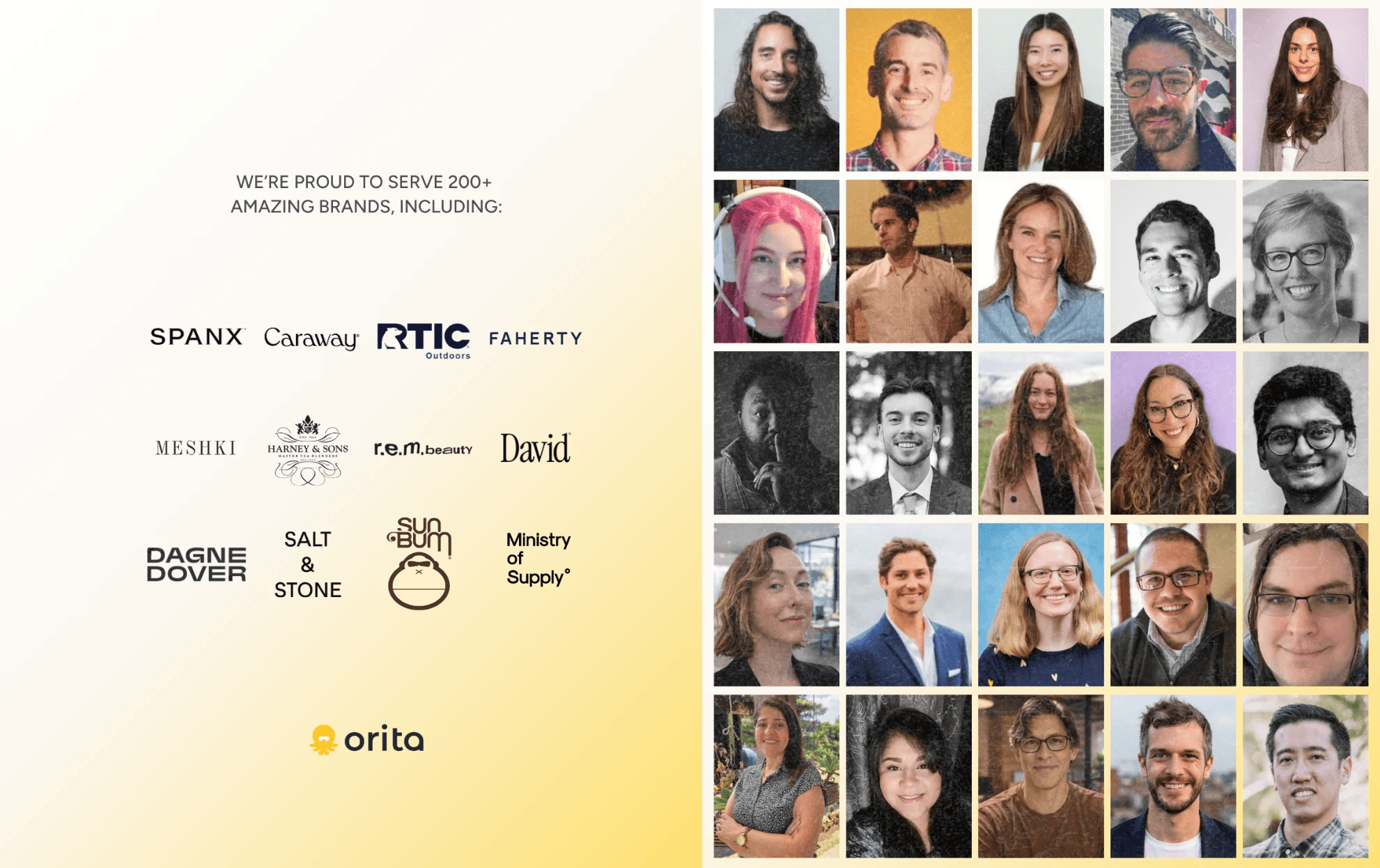 Brands like Spanx, Faherty, Caraway, RTIC, Harney & Sons, and Salt & Stone trust Orita to help them message the right customers at the right time. They all want the same thing: more from their Klaviyo investment without more complexity.